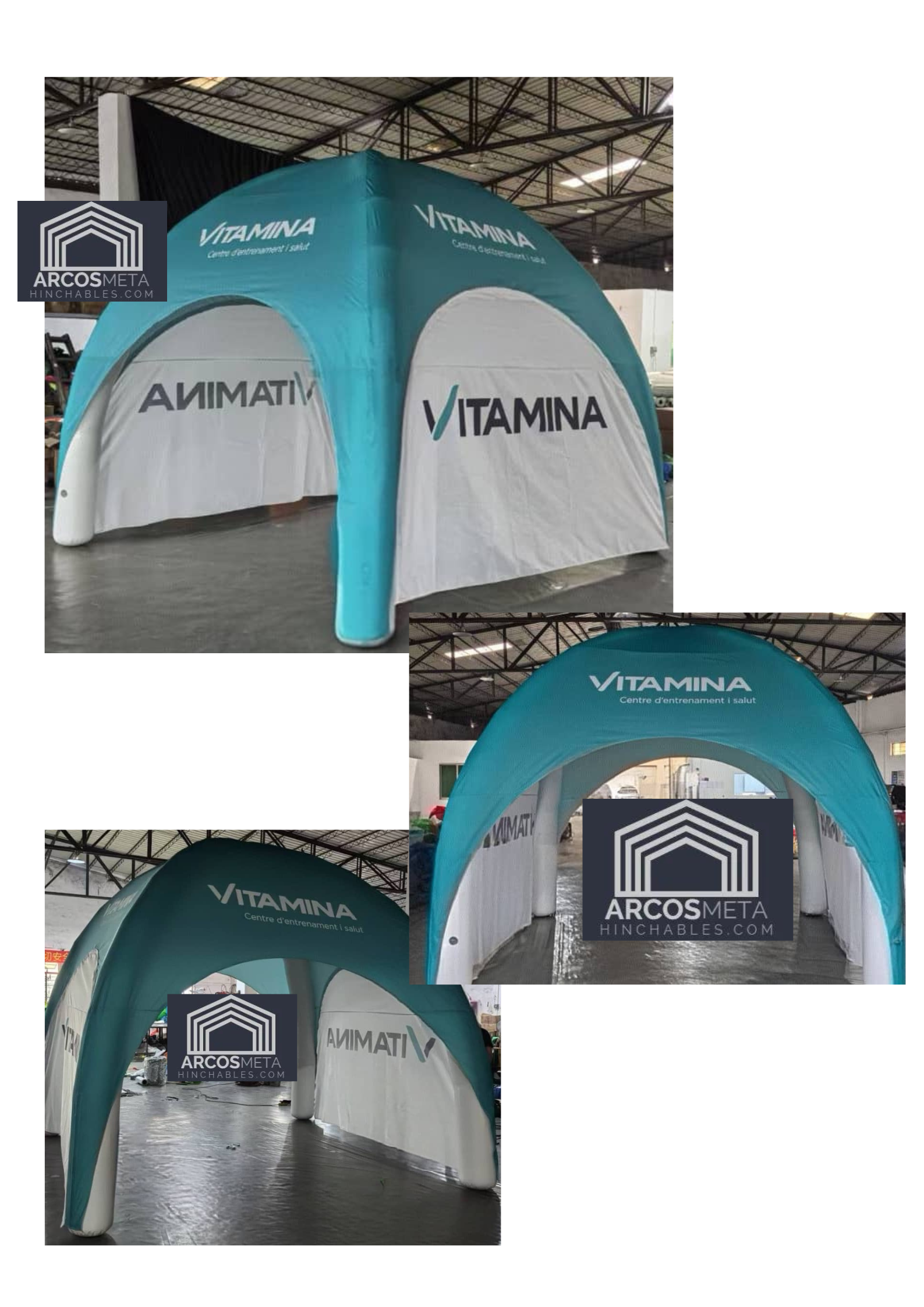 y con capota, y las tradicionales carpas cubo pero con sus pilares hinchables, o con forma de iglú. Todas pueden ser completamente personalizadas y adaptadas a sus necesidades. Cualquiera de estas arañas publicitarias puede ser además complementada con arcos de meta, pelotas gigantes, bolas, totem publicitario, banderolas, skydancer