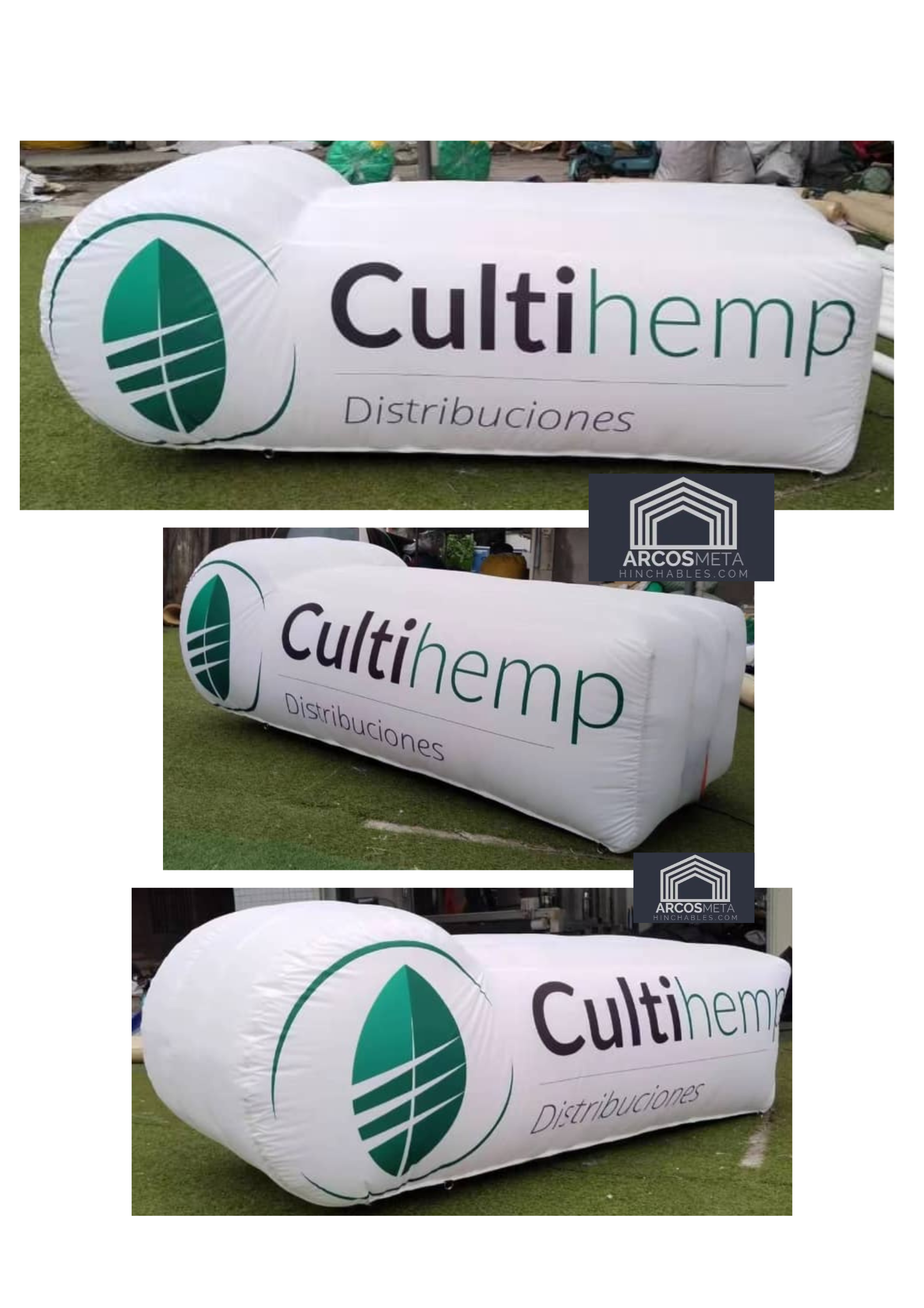 Partiendo del logo original y respetando absolutamente el diseño y el pantone de colores damos volumen a los logotipos y marcas de nuestros clientes obteniendo así un elemento publicitario hinchable